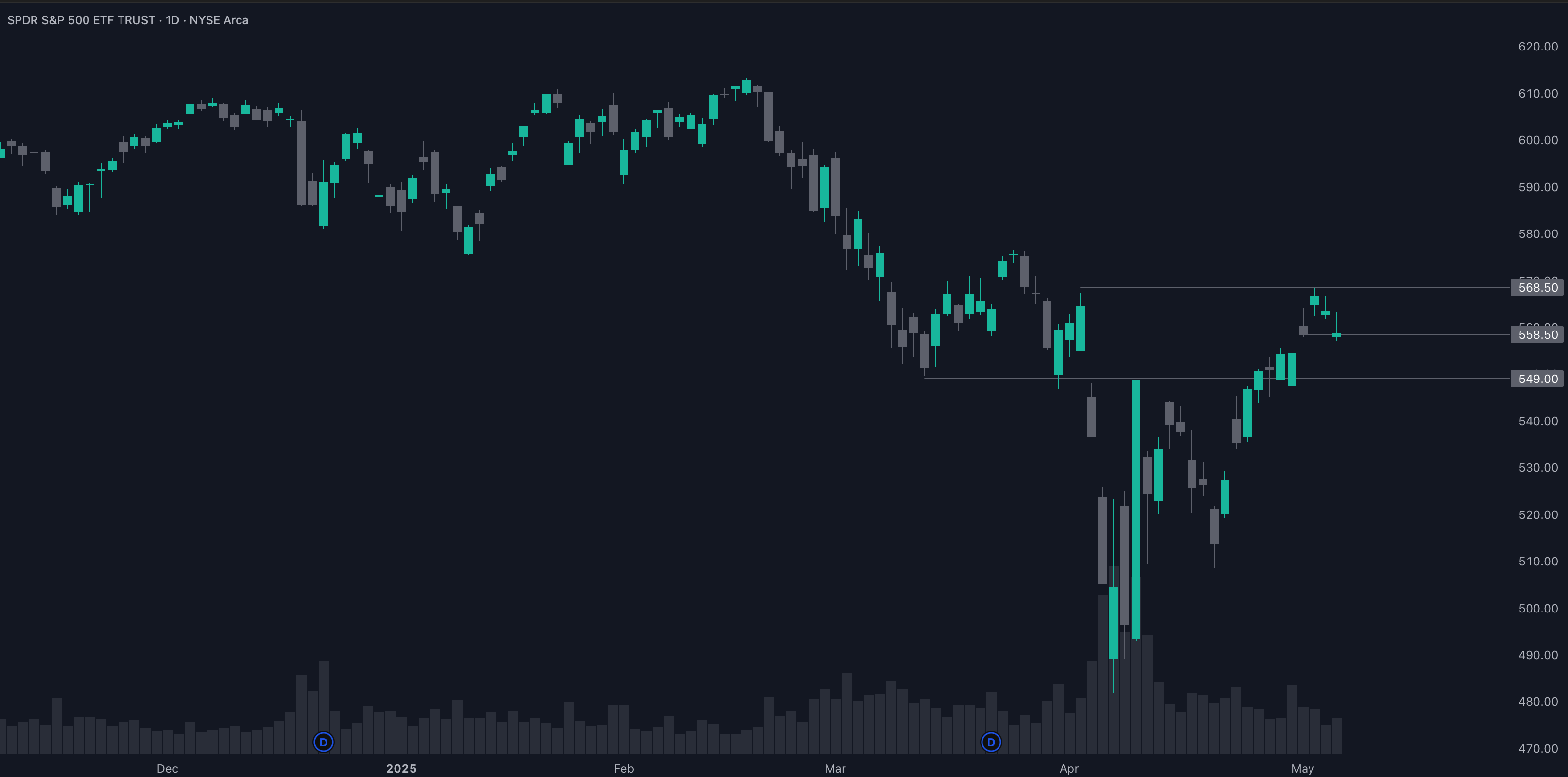- Stock correlates with the overall market performance: QQQ, SPY or RSP